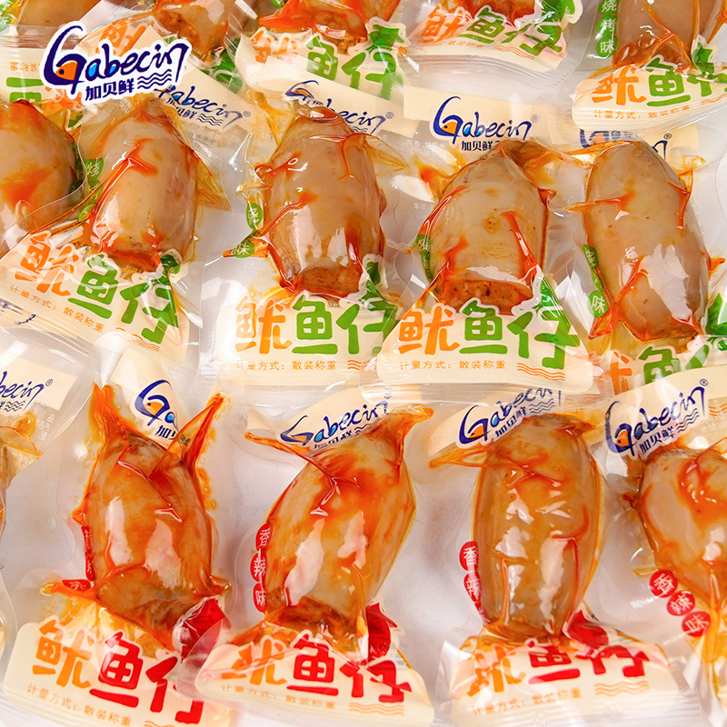 加贝鲜鱿鱼仔香辣烧烤味带籽墨鱼仔小包装即食海鲜零食品解馋小吃