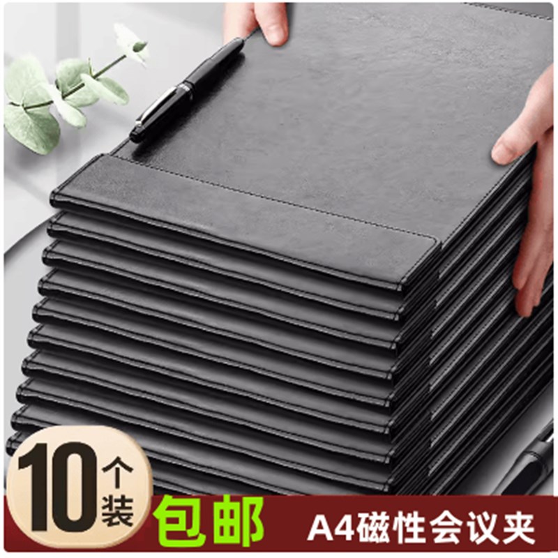 10个A4会议夹皮革磁性垫板文件夹资料夹板商务黑色皮质签约夹