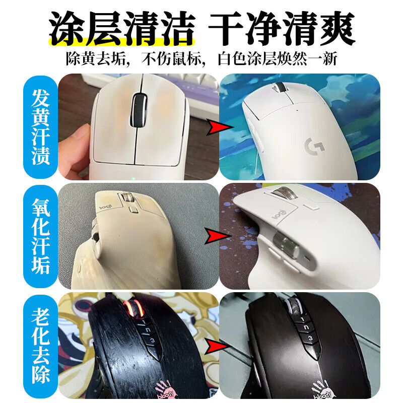 九行类亲肤涂层白色鼠标清洁剂去黄氧化清洗除塑料老化发黄除胶剂
