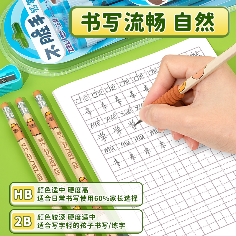 卡皮巴拉铅笔小学生专用幼儿园初学者写字笔儿童安全hb圆杆铅笔一二年级练字学习文具素描笔原木绘画笔