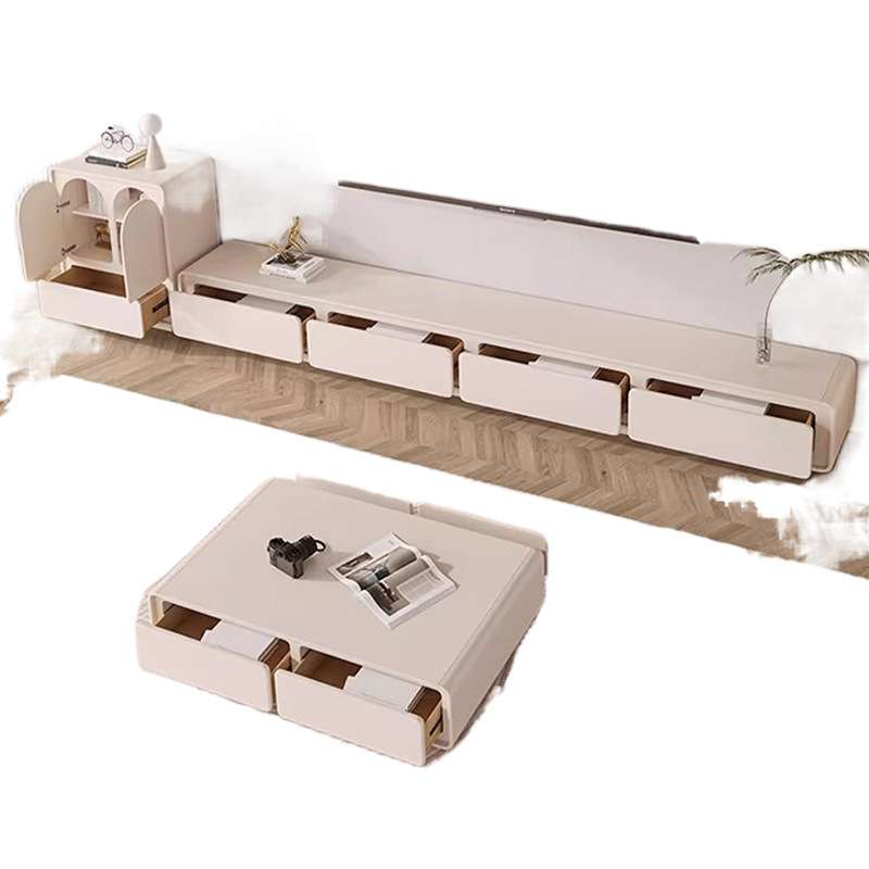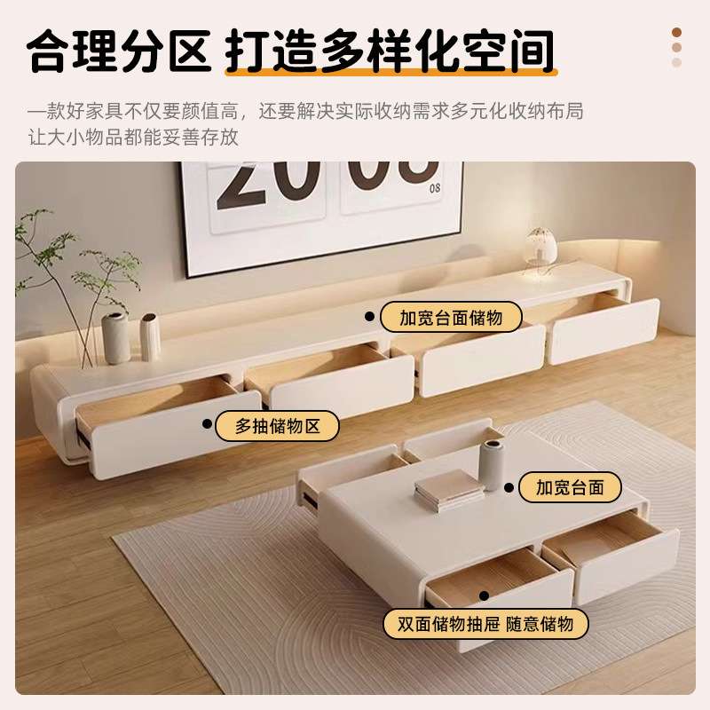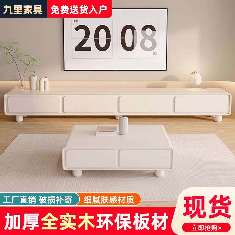 圆角法式奶油风白电视柜简约现代茶几组合客厅家用小户型极简家具