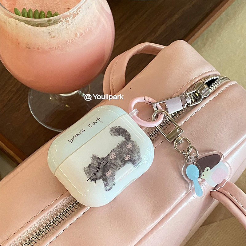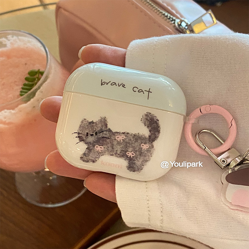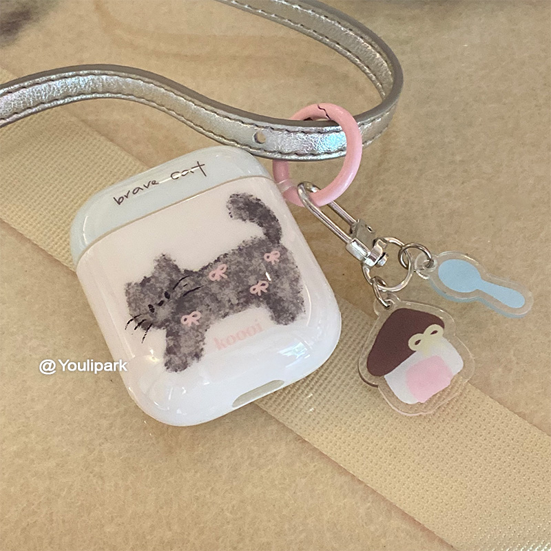 由里公园ins韩系少女蝴蝶结涂鸦猫咪小房子挂件适用于苹果Airpods4代无线蓝牙耳机保护套3Pro软AirpodsPro3代