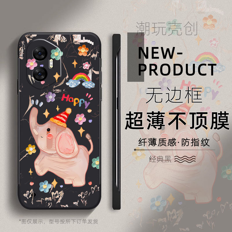 适用于荣耀300pro手机壳200快乐大象油画涂鸦100PRO无边框90GT荣耀60SE半包边50不顶膜30新款70创意硬壳