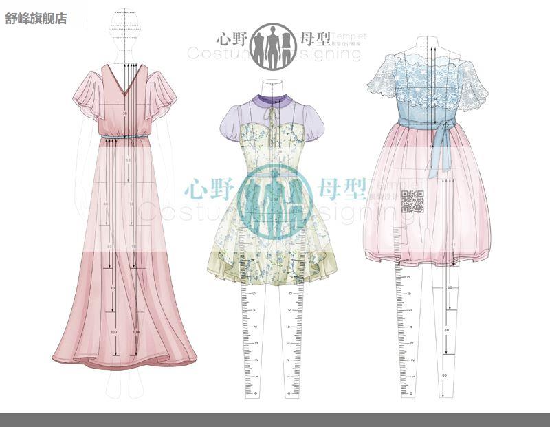 服装设计款式图模板尺时野画手绘工具-心母装型女款人形体尺