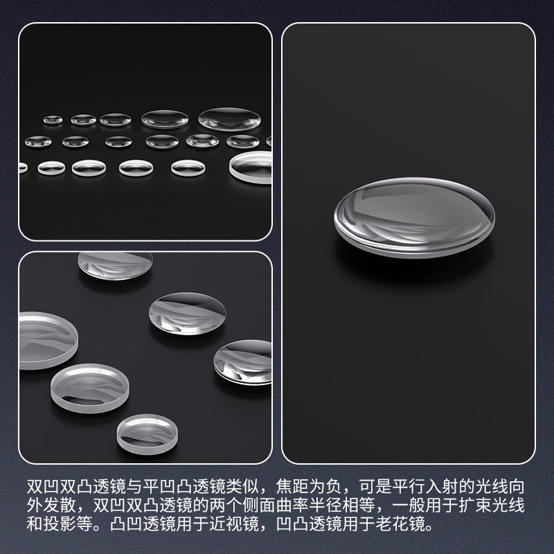 光学玻璃镜片双凸双凹平凸凸透镜 自制望远镜制作组装材料伽利略望远镜开普勒 照相机 初中物理光学实验仪器