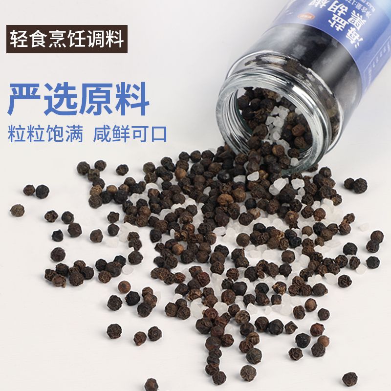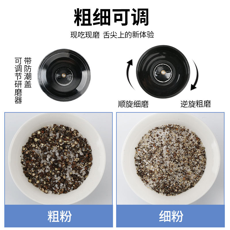 聚美厨海盐黑胡椒海盐粒研磨器黑胡椒粉牛排调料混合调味料黑胡椒