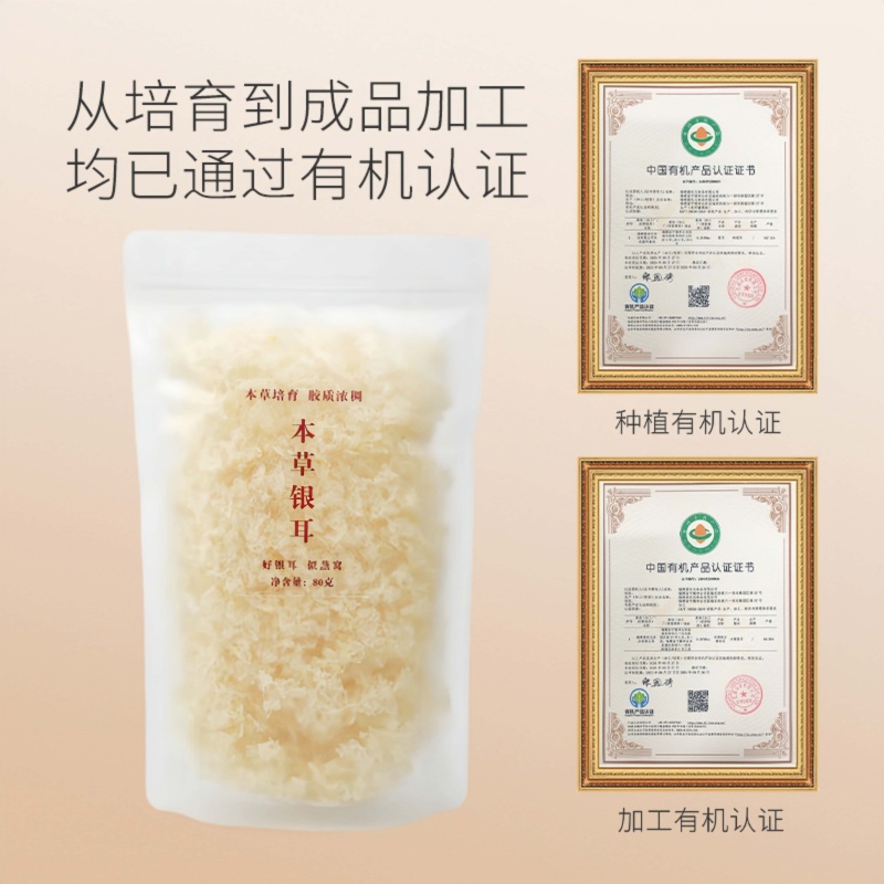 金丝耳本草有机银耳60g干货白木耳雪耳糯耳免煮冲泡即食银耳羹