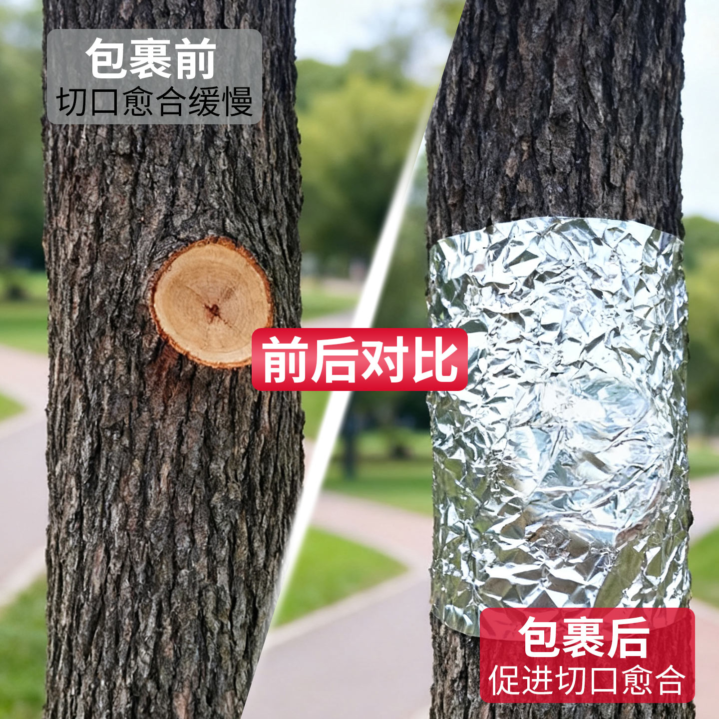 铝箔胶带盆景树木伤口愈合锡箔纸果树嫁接膜树木嫁接锡纸保湿隔热促进树苗切口生长包扎密封胶带保温棉缠绕带