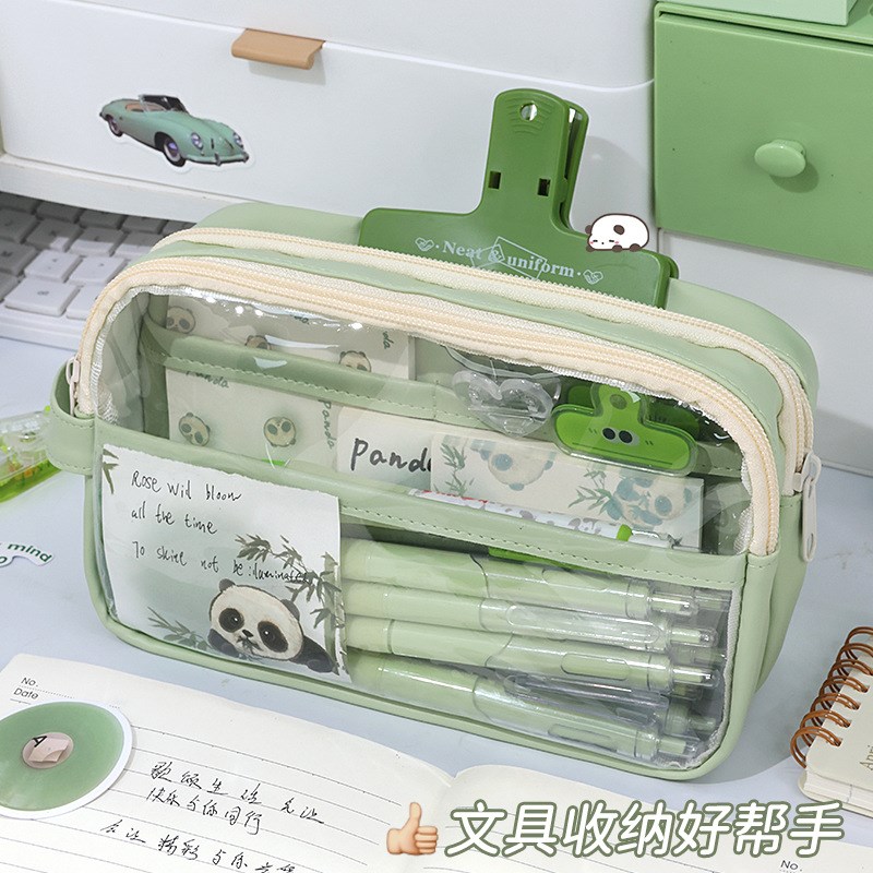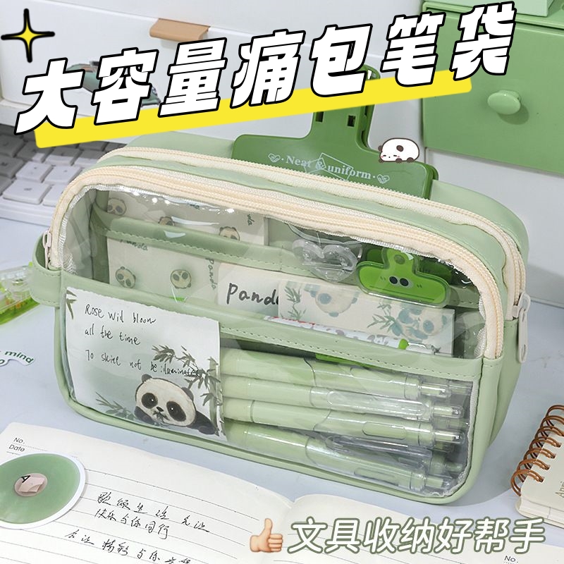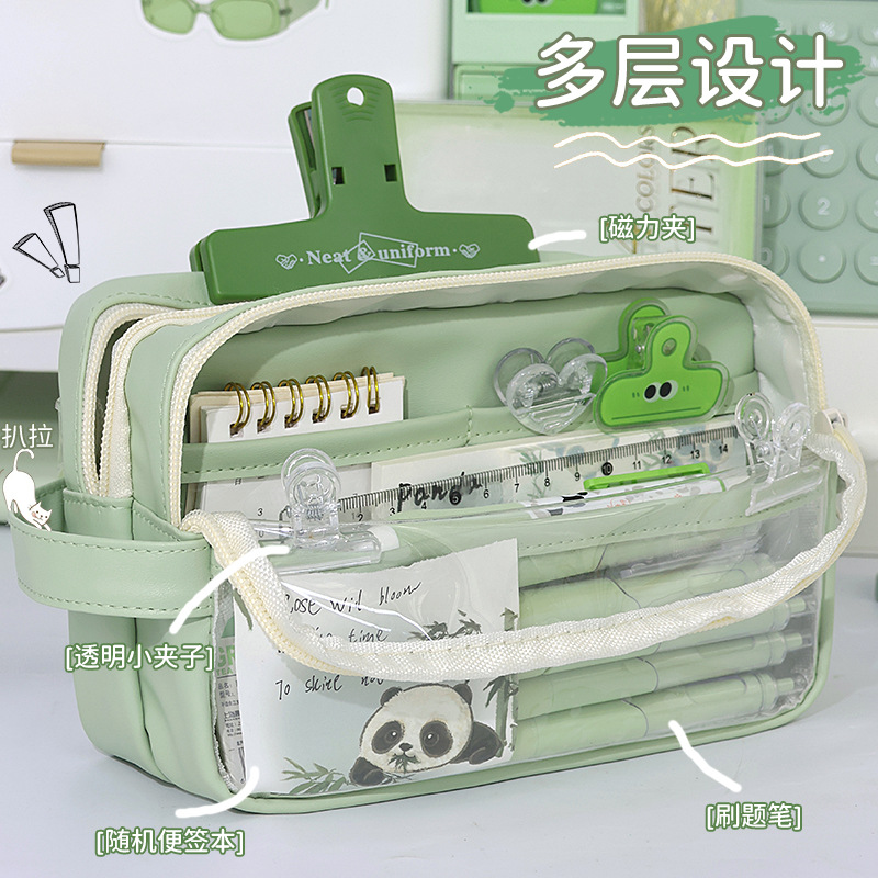 速发2024新款熊猫笔袋三层痛包高颜值设计感小众风多层超大透明收