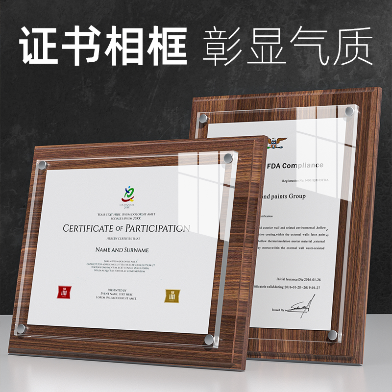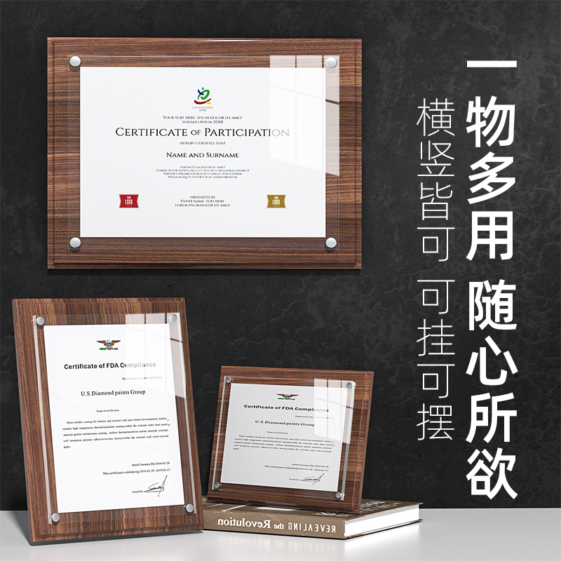 荣誉证书定制木质相框摆台聘书外壳高档奖状裱框授权书捐赠结业证书封面任命书优秀员工获奖收藏证书制作打印