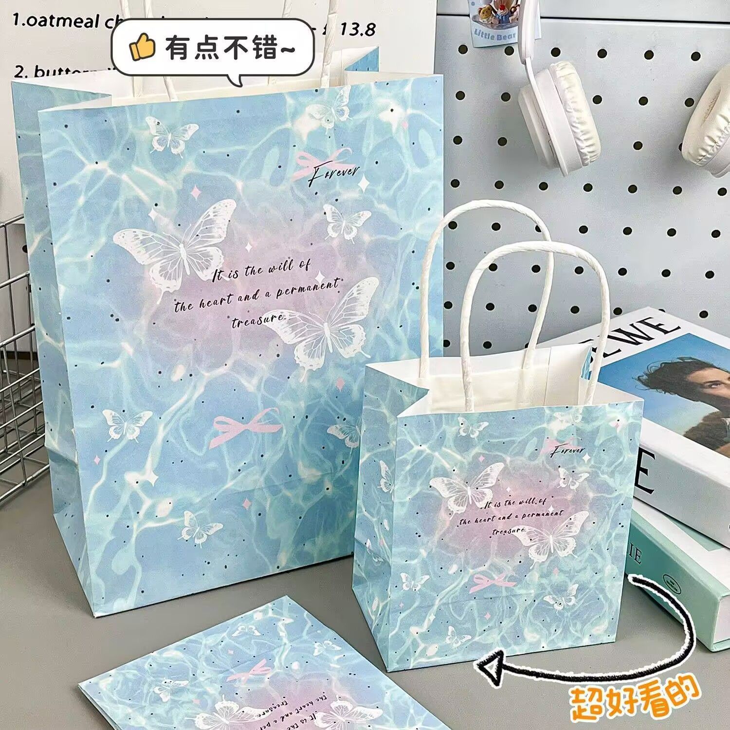 水波纹蝴蝶情人节纪念日礼品包装纸礼袋包装高颜值贺卡生日礼物袋