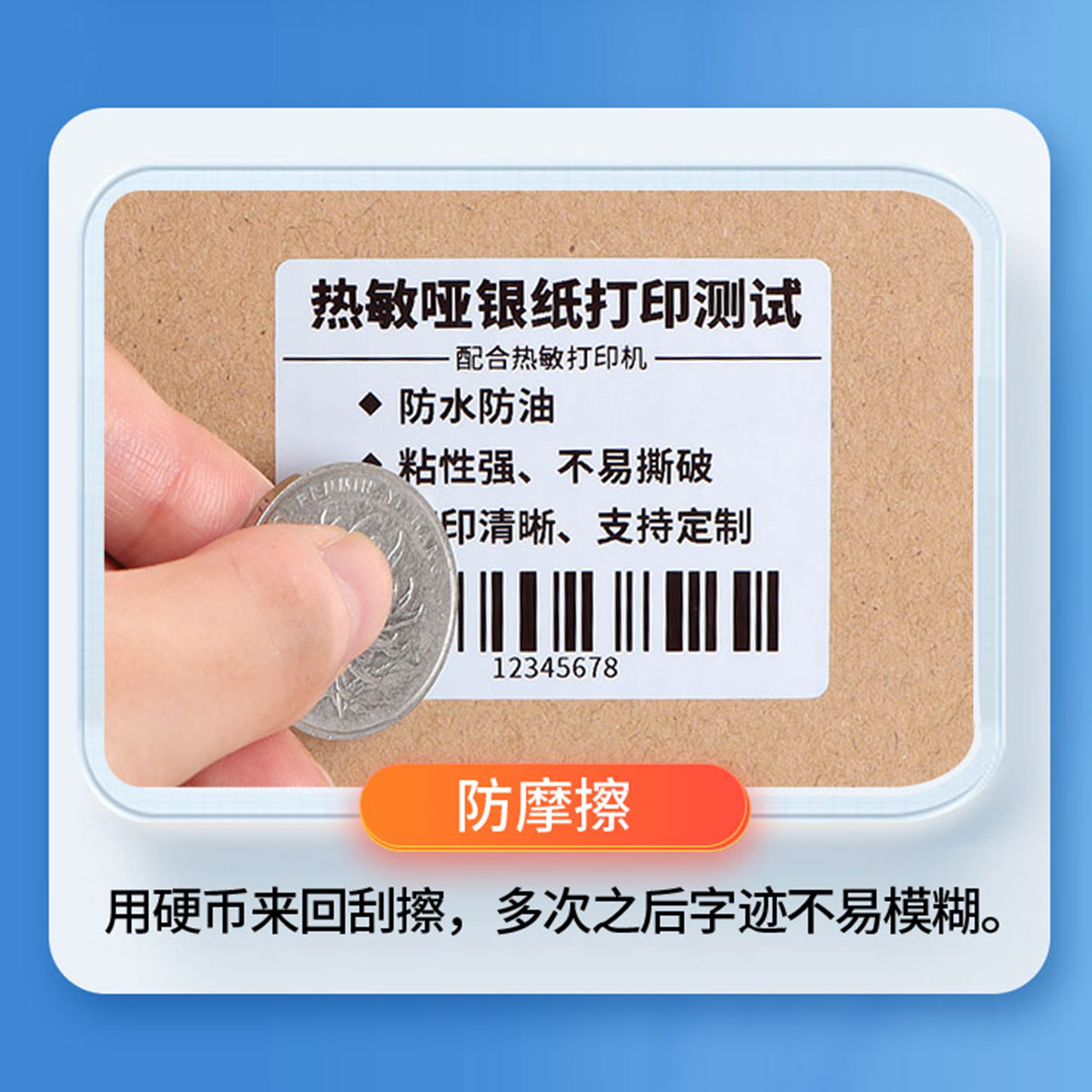三防热敏亚银纸标签纸60*40 30 20 70X50 80 90 100哑银PET不干胶条码打印机防水油防撕固定资产标签
