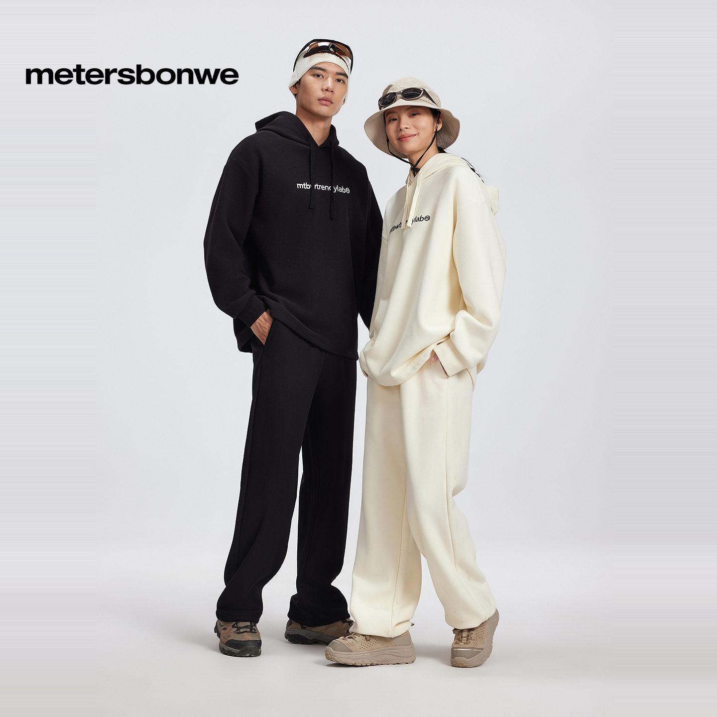 美特斯邦威男女同款卫衣秋冬季节时尚华夫格舒适加绒印花连帽上衣