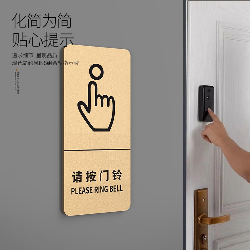 创意请按门铃温馨提示牌随手关门关灯标识牌上班请打卡标志牌定制