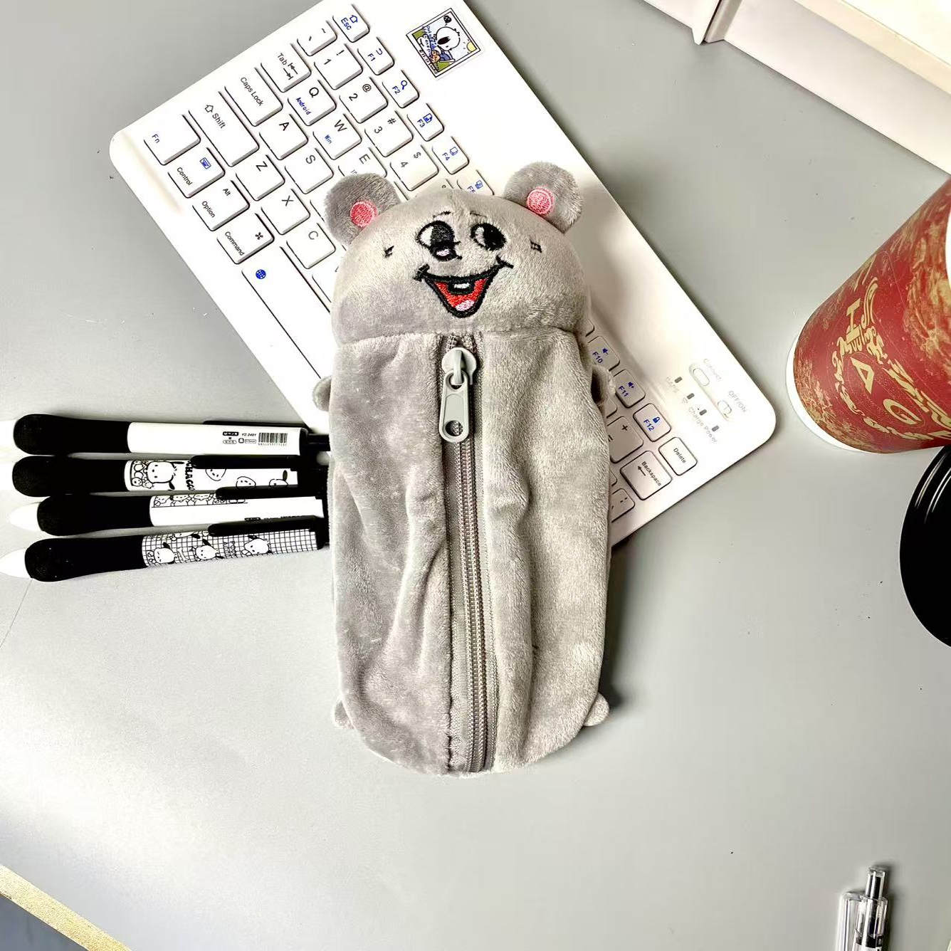 ins日系美叽和笑脸大鼠笔袋搞怪可爱毛绒文具盒高严重公仔铅笔盒大容量小红书同款老鼠铅笔袋学生玩偶文具袋