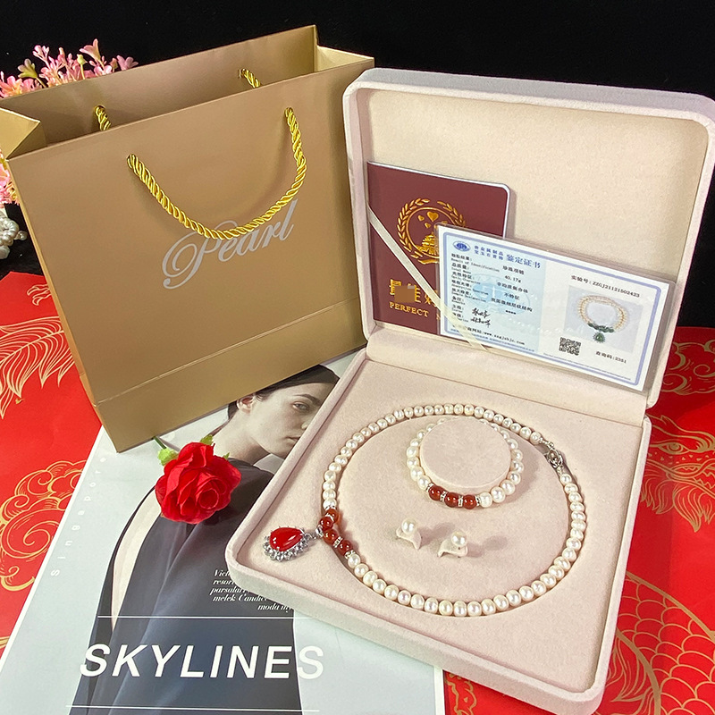 诸暨天然真的淡水珍珠项链饰品套装真珍珠串链母亲节轻奢高级感