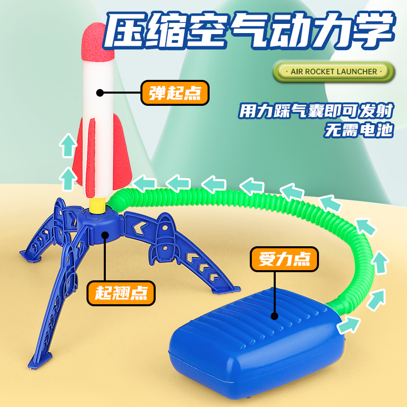 儿童脚踩冲天火箭发射筒小玩具户外男孩发射器夜发光飞天炮广场