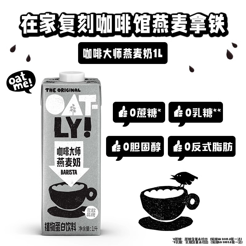 OATLY咖啡大师燕麦奶咖啡伴侣0蔗糖植物蛋白饮料