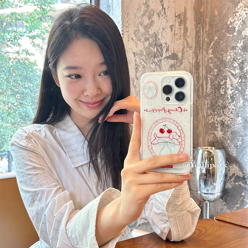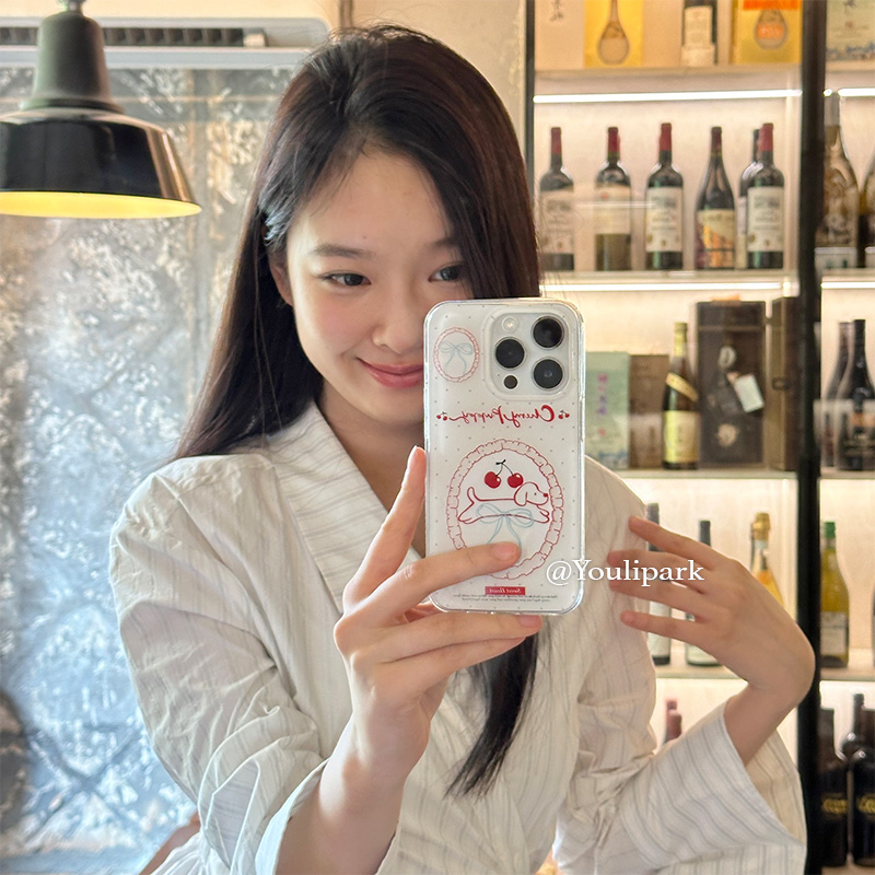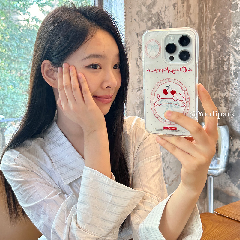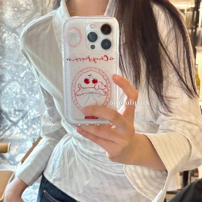 由里公园ins简约小众少女波点樱桃狗狗15适用16pro苹果16ProMax手机壳iPhone16全包12新款14Promax保护套13软
