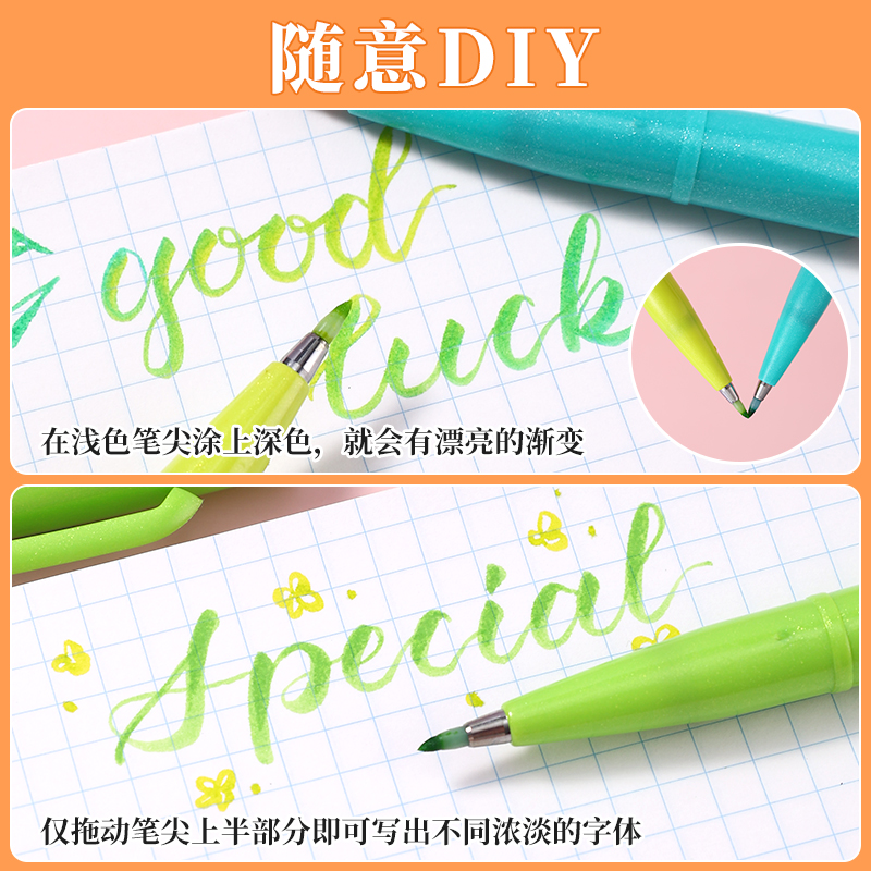 日本派通pentel秀丽笔touch彩色软头笔brush柔绘笔baby花体英文用专手账记笔记写贺卡彩绘小楷练字初学者