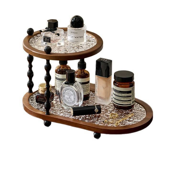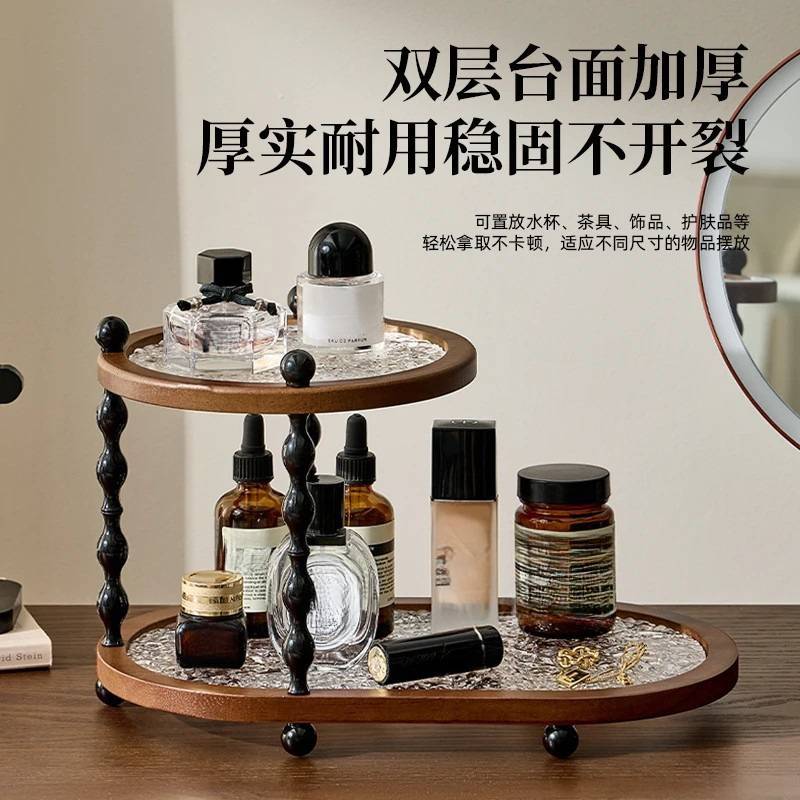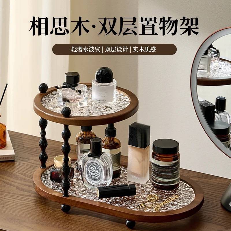 中古风桌面杯子相思木置物架感轻奢家用台面特别好看双层收纳泰巷