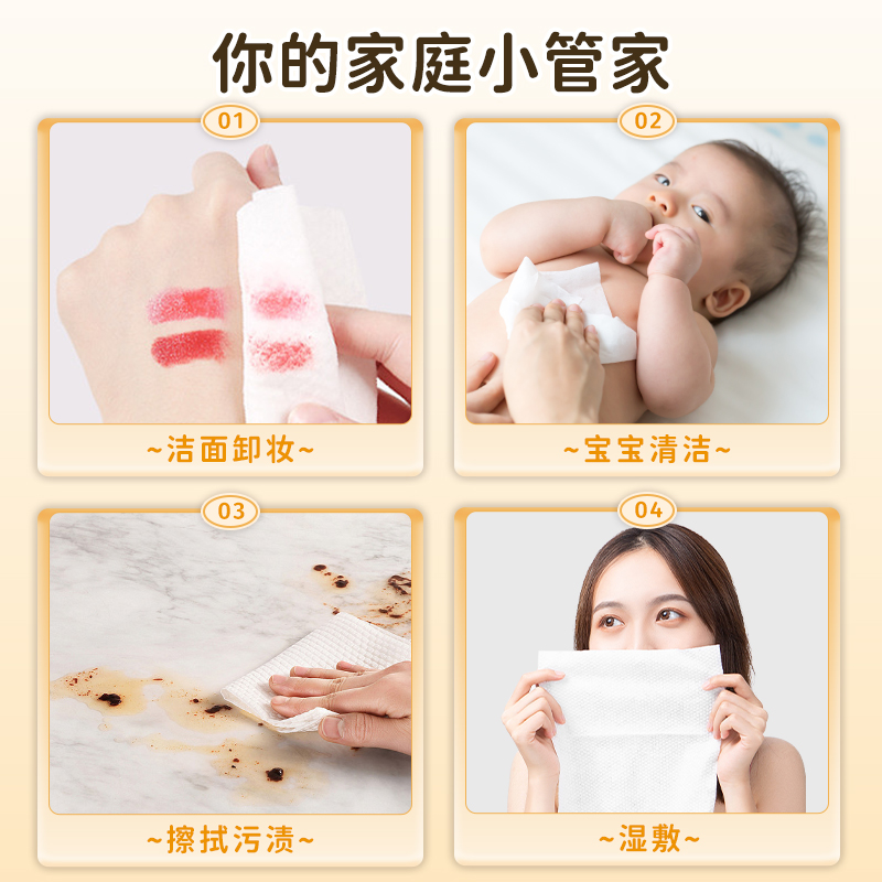 全棉时代洗脸巾一次性纯棉柔巾抽取式干湿两用擦脸洁面巾80抽4包