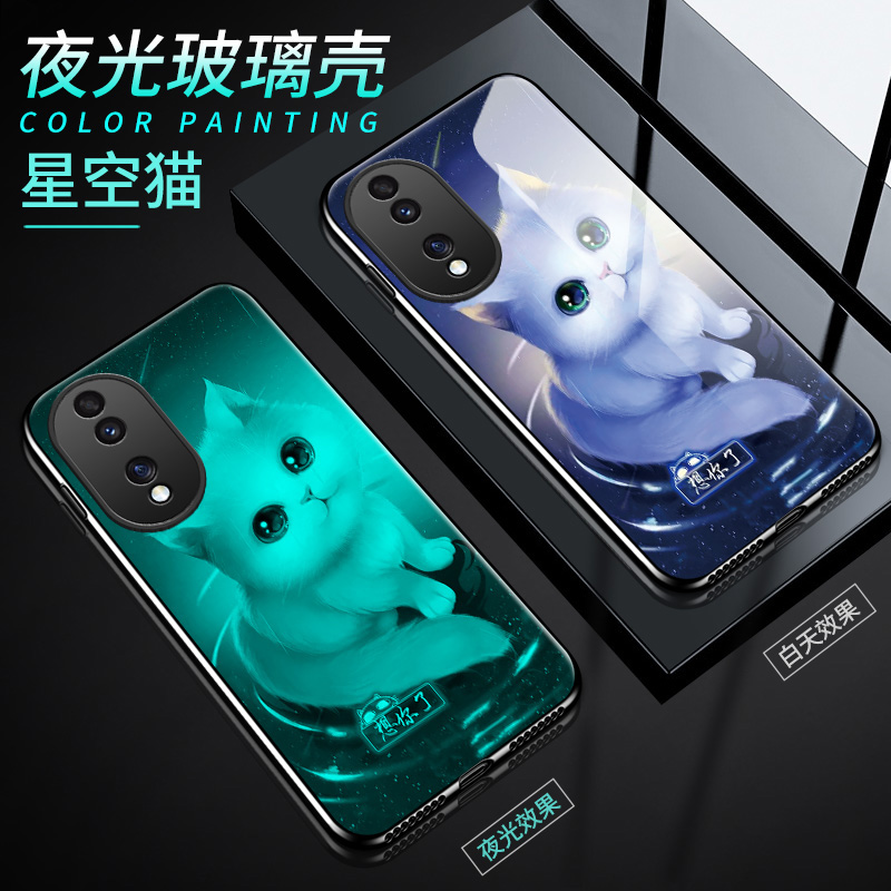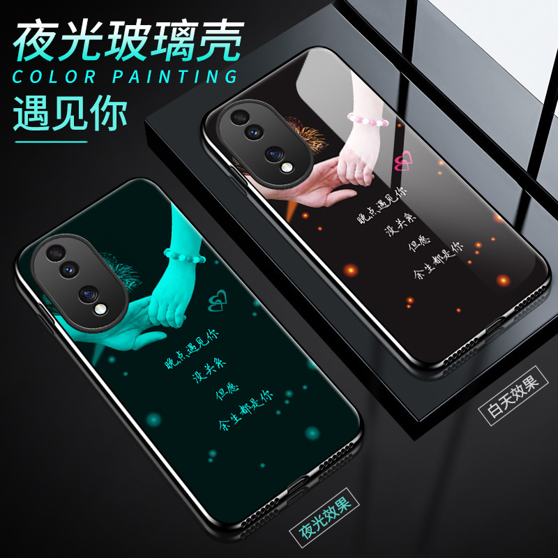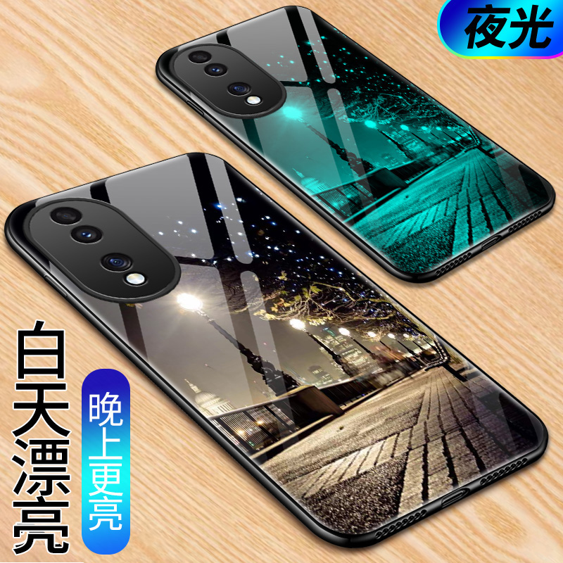 夜光玻璃适用于荣耀90手机壳Honor 90Pro硅胶软边硬壳5G全包防摔华为荣誉90男女溶药90por保护套九十镜面情侣