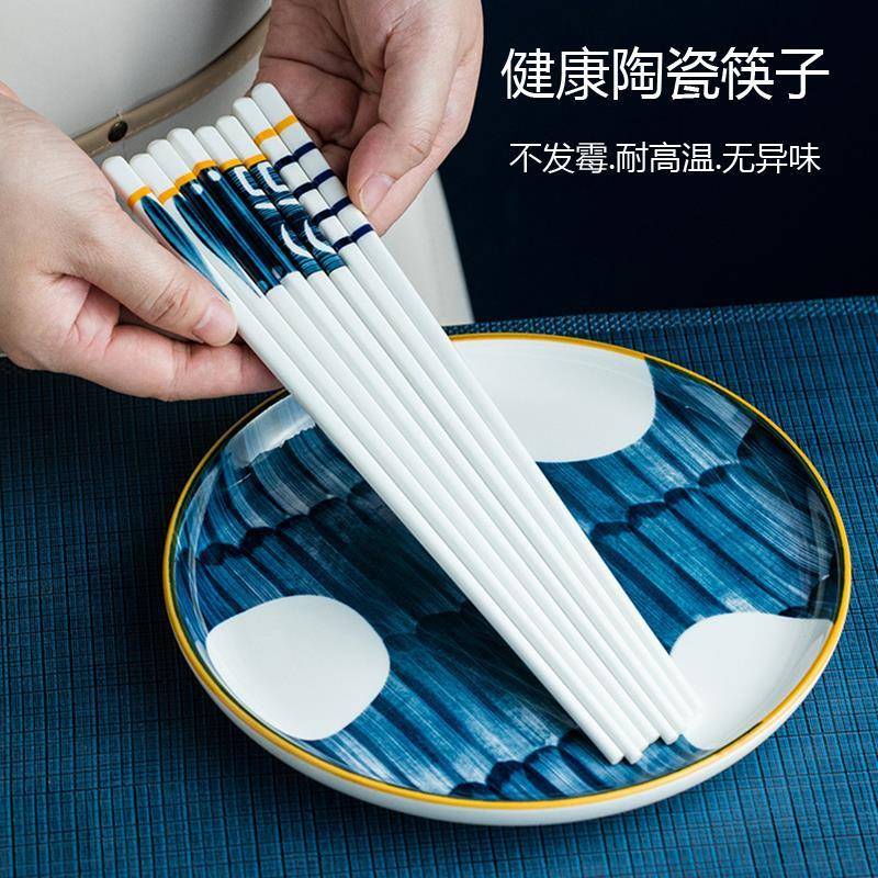 炊大皇陶瓷筷子家用高档套装高颜值餐具耐高温赫本风防霉分食瓷筷