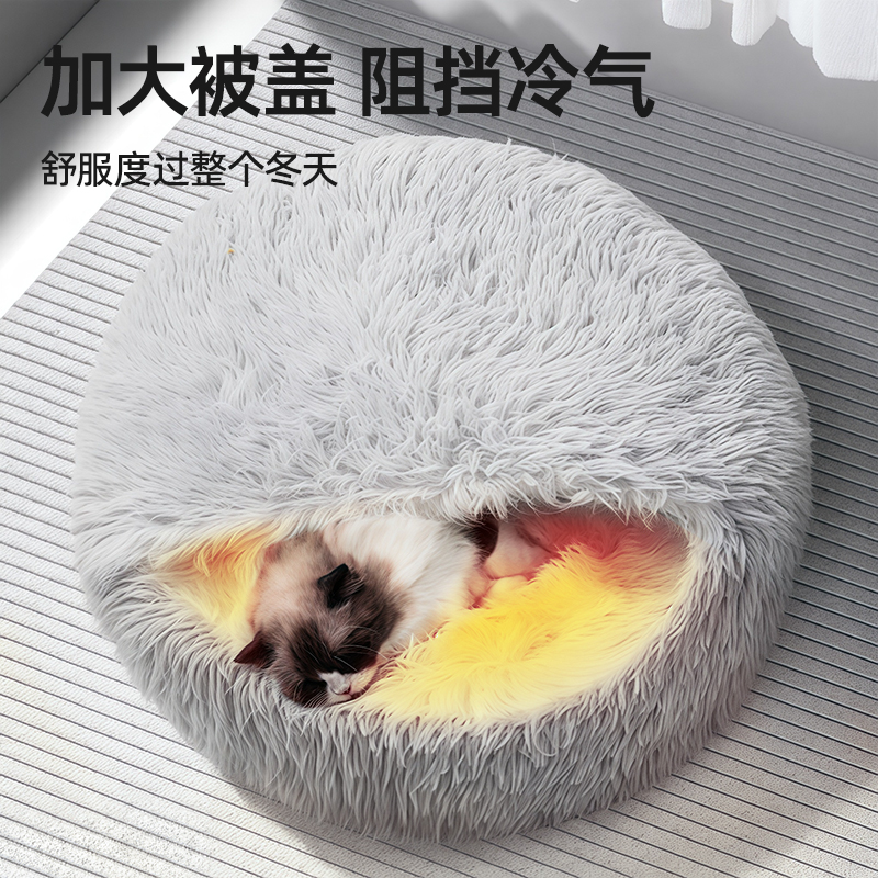 猫窝贝壳窝长毛绒半封闭宠物猫床睡袋狗窝封闭式冬季保暖猫屋加绒