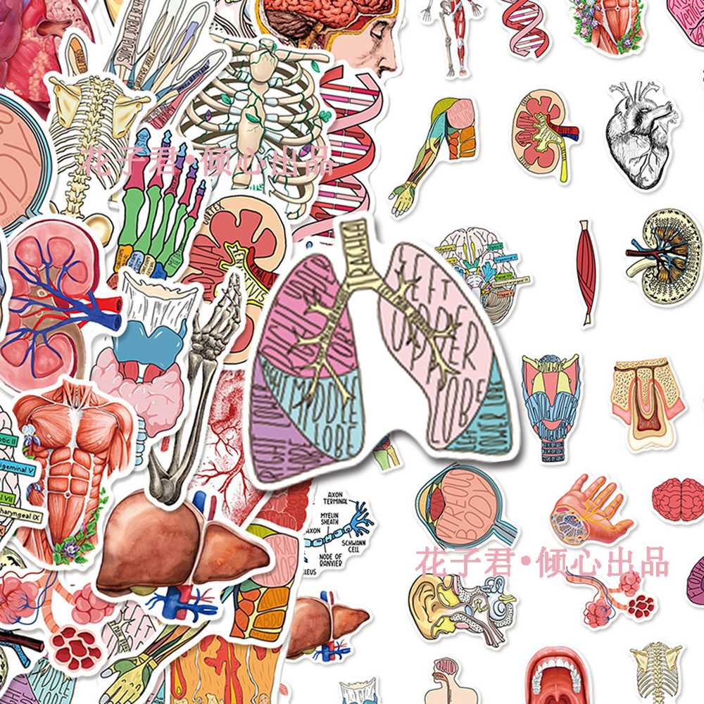 100张器官解剖图贴纸卡通创意彩绘涂鸦贴画diy手账笔记本素材贴