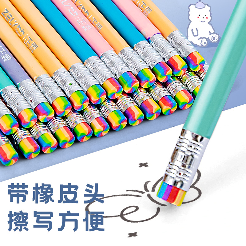 得力铅笔小学生一年级带橡皮儿童hb幼儿园初学者2B原木考试专用