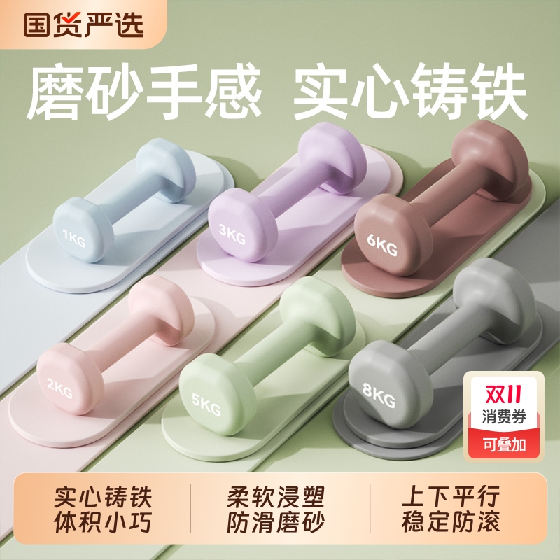 哑铃实心铸铁女士健身家用器材2kg一对男士小哑铃纯铁锻炼力量