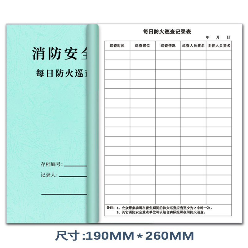 每日防火巡查记录本检查记录表消防台账火灾隐患培训控制室值班交接班每日安全巡查记录本消防安全台账登记本