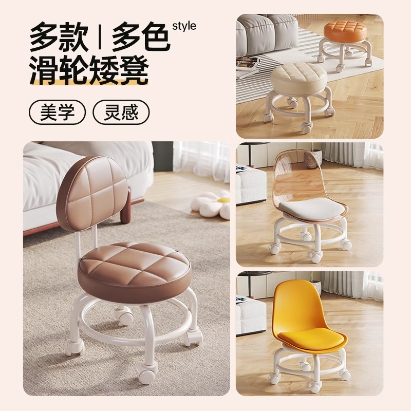 滑轮矮凳家用儿童带娃学步可移动万向轮垫脚凳美缝擦地静音圆椅子