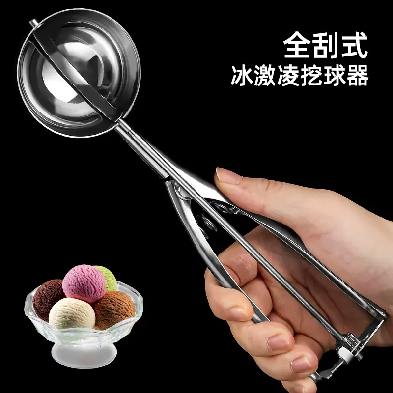 不锈钢匙冰淇淋勺挖球器雪糕家用挖水果球西瓜冰激凌勺子冰箱防滑