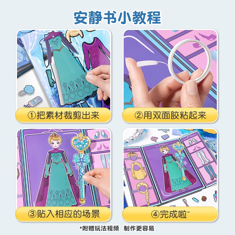 艾莎公主安静书新款免裁剪女孩冰雪奇缘爱莎化妆换装贴纸儿童玩具小屋手工diy材料包成品女童贴画六一节礼物