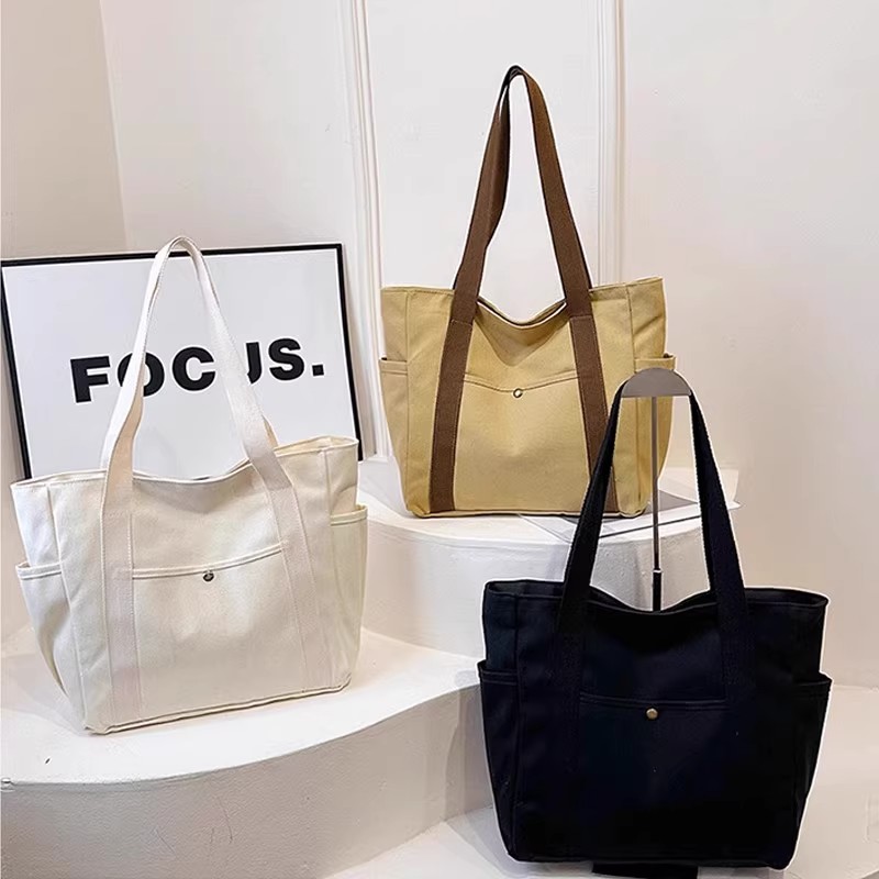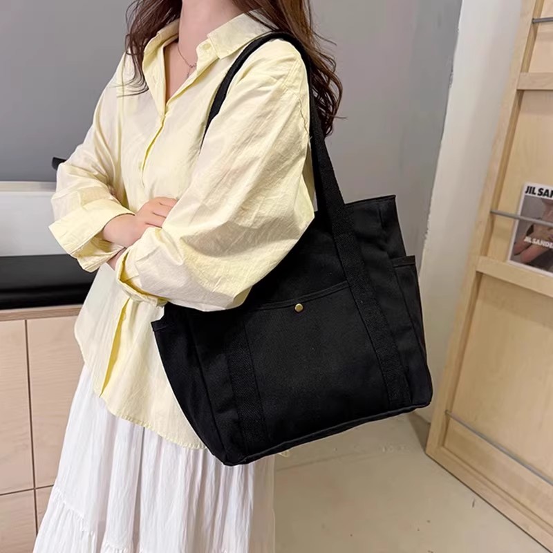 升级加大容量托特帆布包上班高颜值通勤百搭学生单肩布袋包手提女