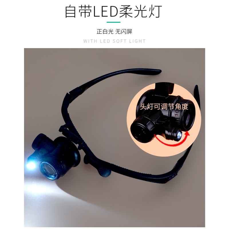头戴眼镜式放大镜高清看鸽子眼带led灯电子电路板维修用钻石腰围