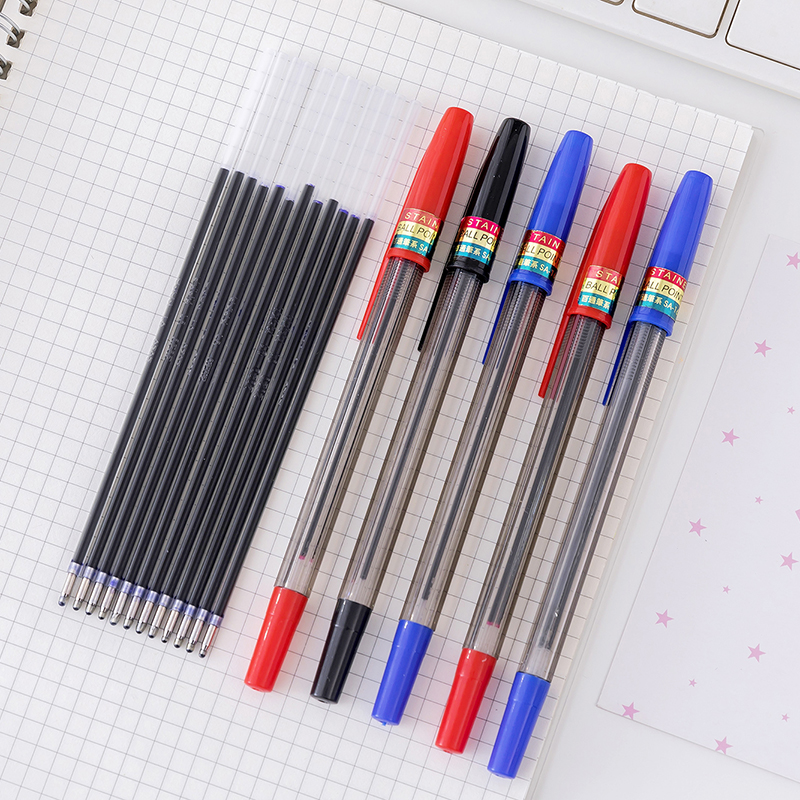 蓝色圆珠笔芯盖帽式 黑色0.7mm笔芯老师办公红色原子笔教师批改用