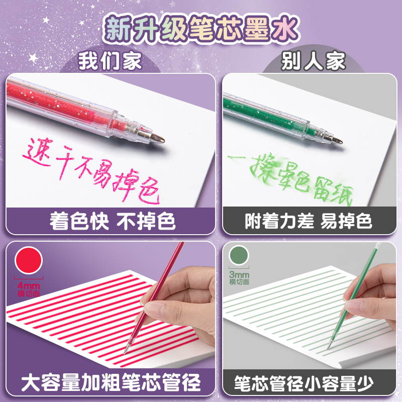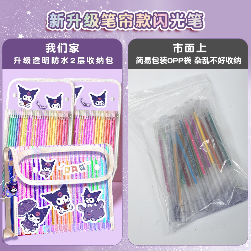 库洛紫米彩色闪光笔亮晶晶珠光荧光标记笔流沙银光啫喱发光水彩笔