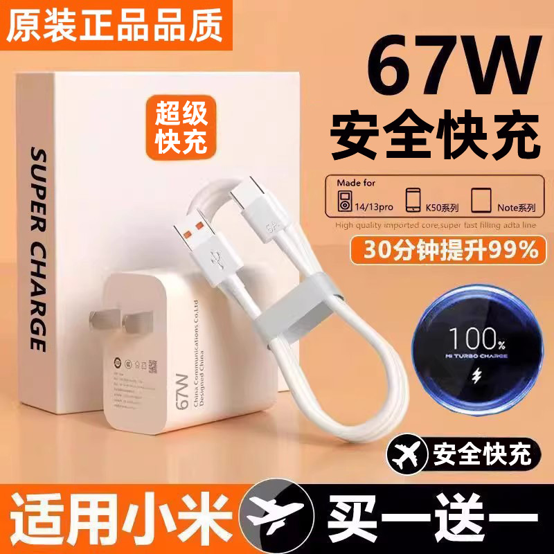高品质120W12/13 Pro 14极速充线数据线套装67W适用红米K40K50K60超级闪充