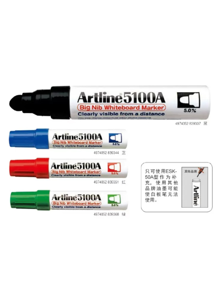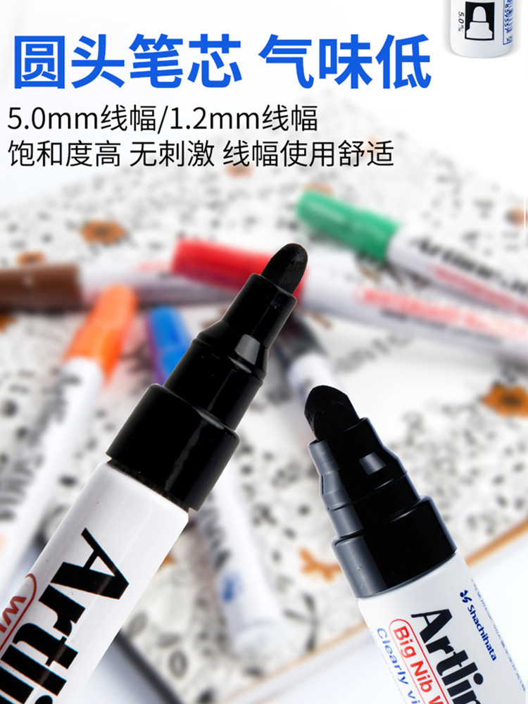 日本旗牌-雅丽Artline可补充墨水白板笔2.0mm中字笔头水性低气味教师白板专用白板笔可擦拭广告笔5.0mm粗圆头