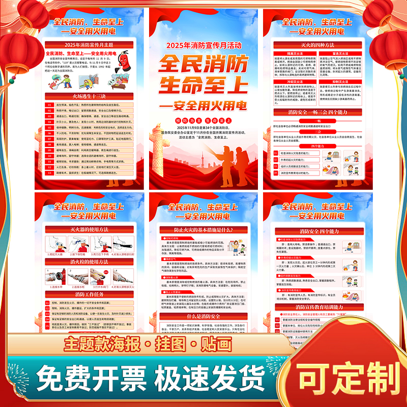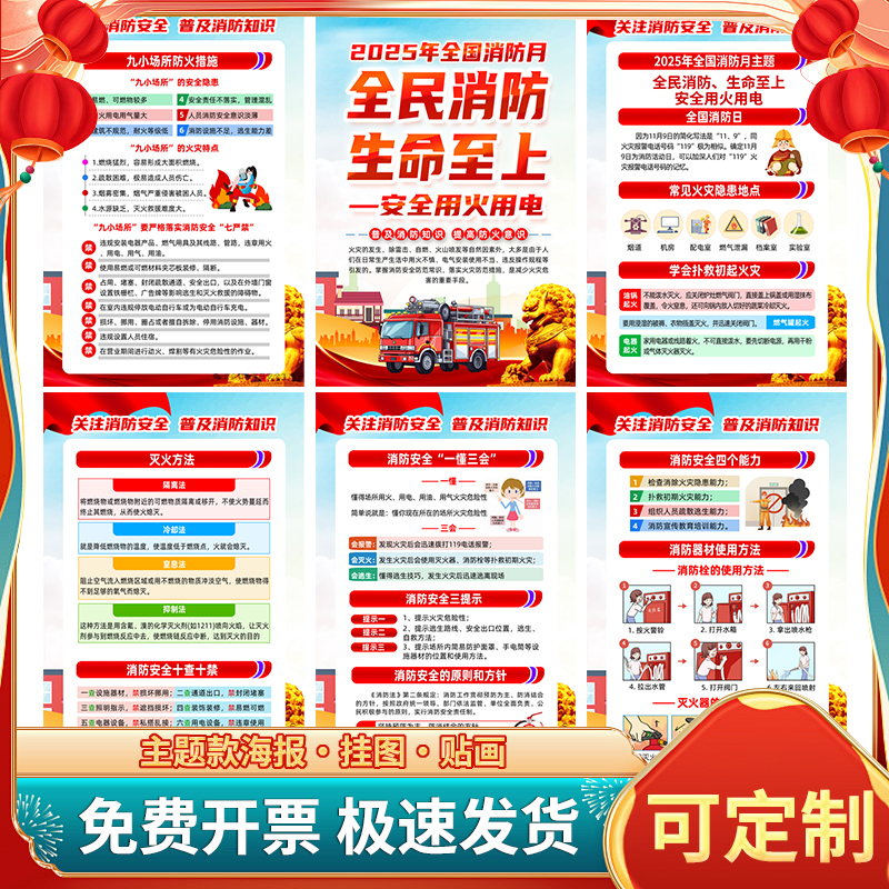 2025年消防月海报消防安全宣传海报安全生产宣传栏海报消防日海报车间宣传栏企业消防知识企业防火检查墙贴画