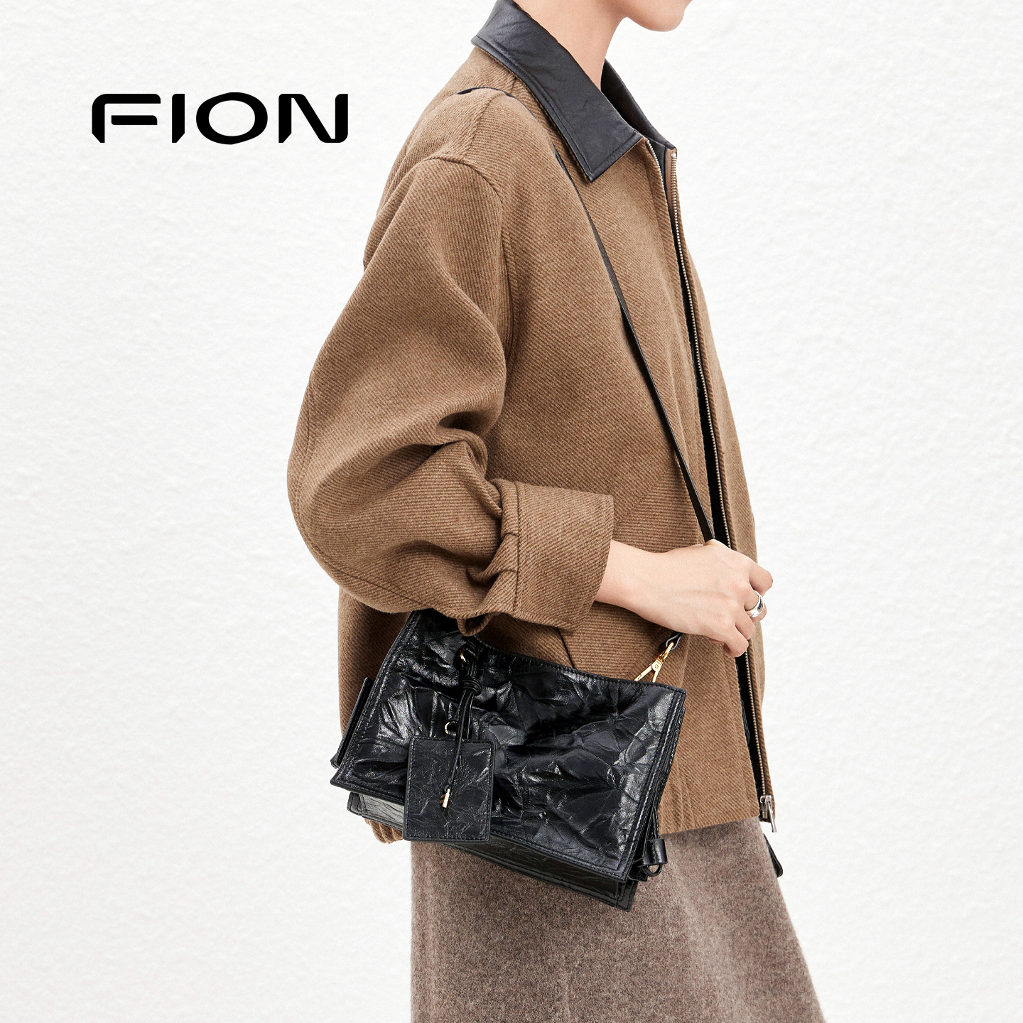 Fion/菲安妮糖纸系列真皮托特包高级手提公文包单肩斜挎包包女