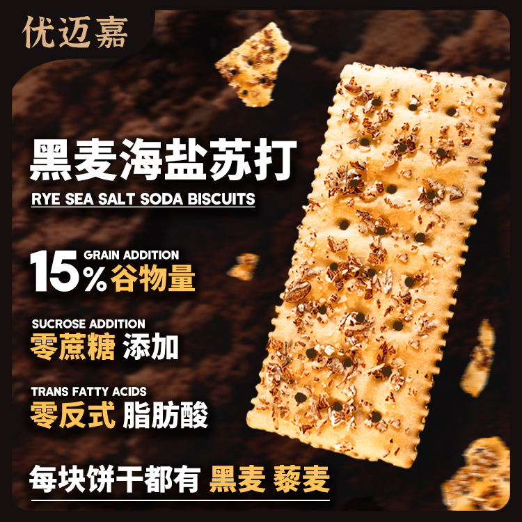 无糖饼干碱性黑麦海盐苏打饼干梳打薄脆学生代餐零食养胃早餐茶点