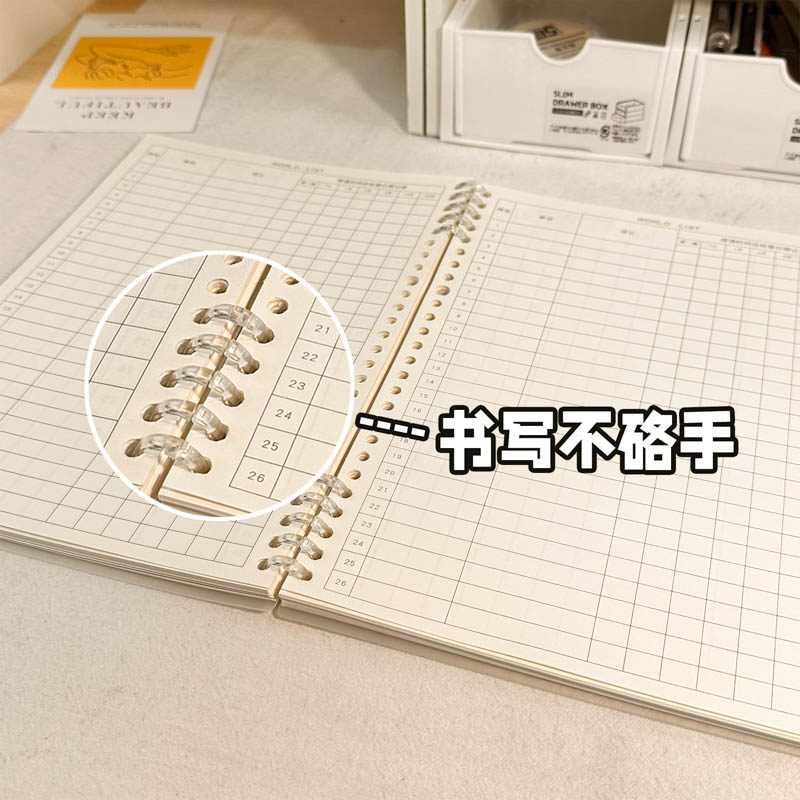上翻活页笔记本可拆卸方格本网格本子高颜值初中生专用高中格子小方格方形本复古考研加厚2025新款文具草稿纸