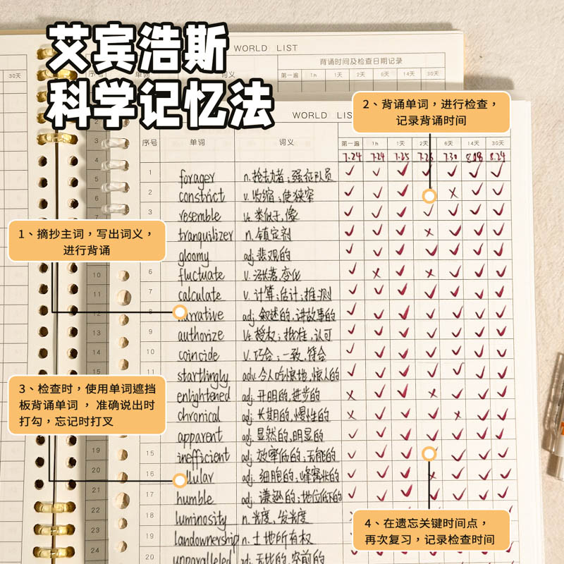 英语单词本默写本记忆艾宾浩斯遗忘曲线记背神器积累考研大学生纸便携式学习笔记本子初高中背诵听写速记活页