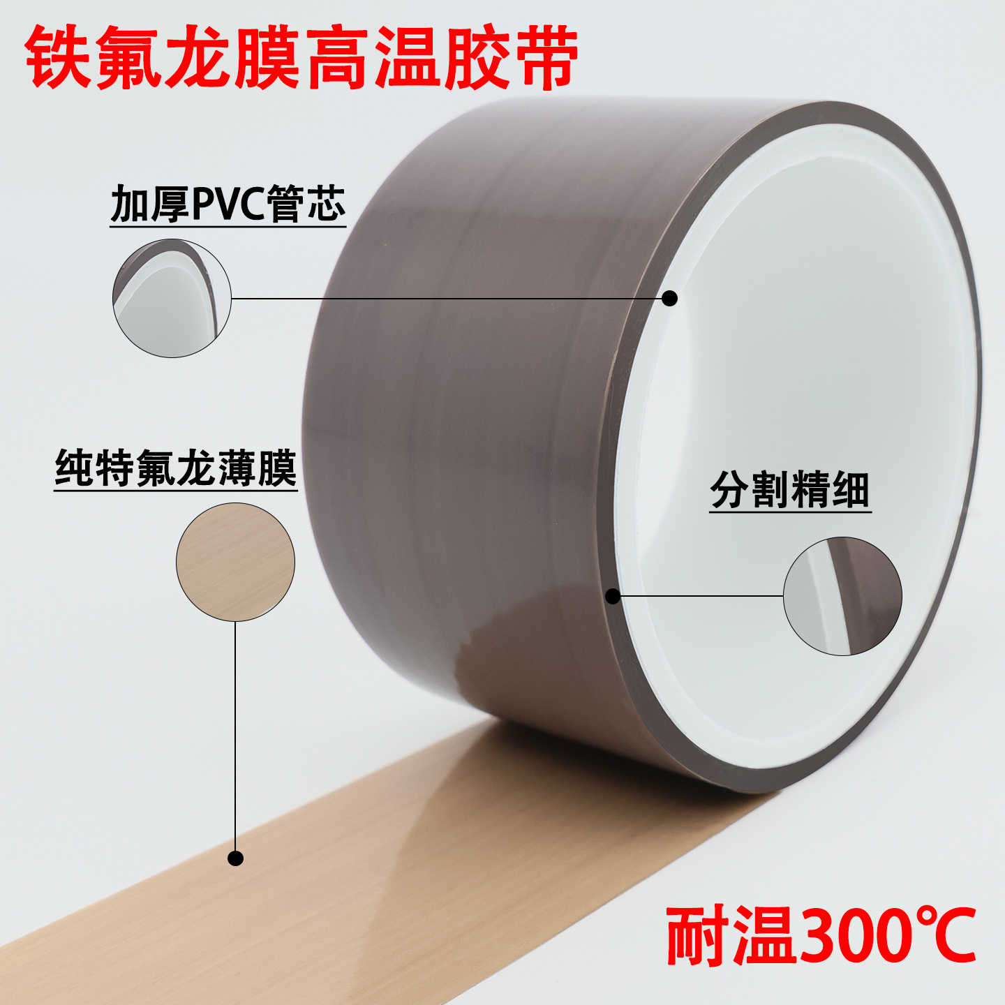 0.08mm厚特氟龙膜胶带纯铁氟龙薄膜耐高温耐磨聚四氟乙稀PTFE胶带封口机缝纫机压脚贴皮特氟龙纯胶膜高温胶布
