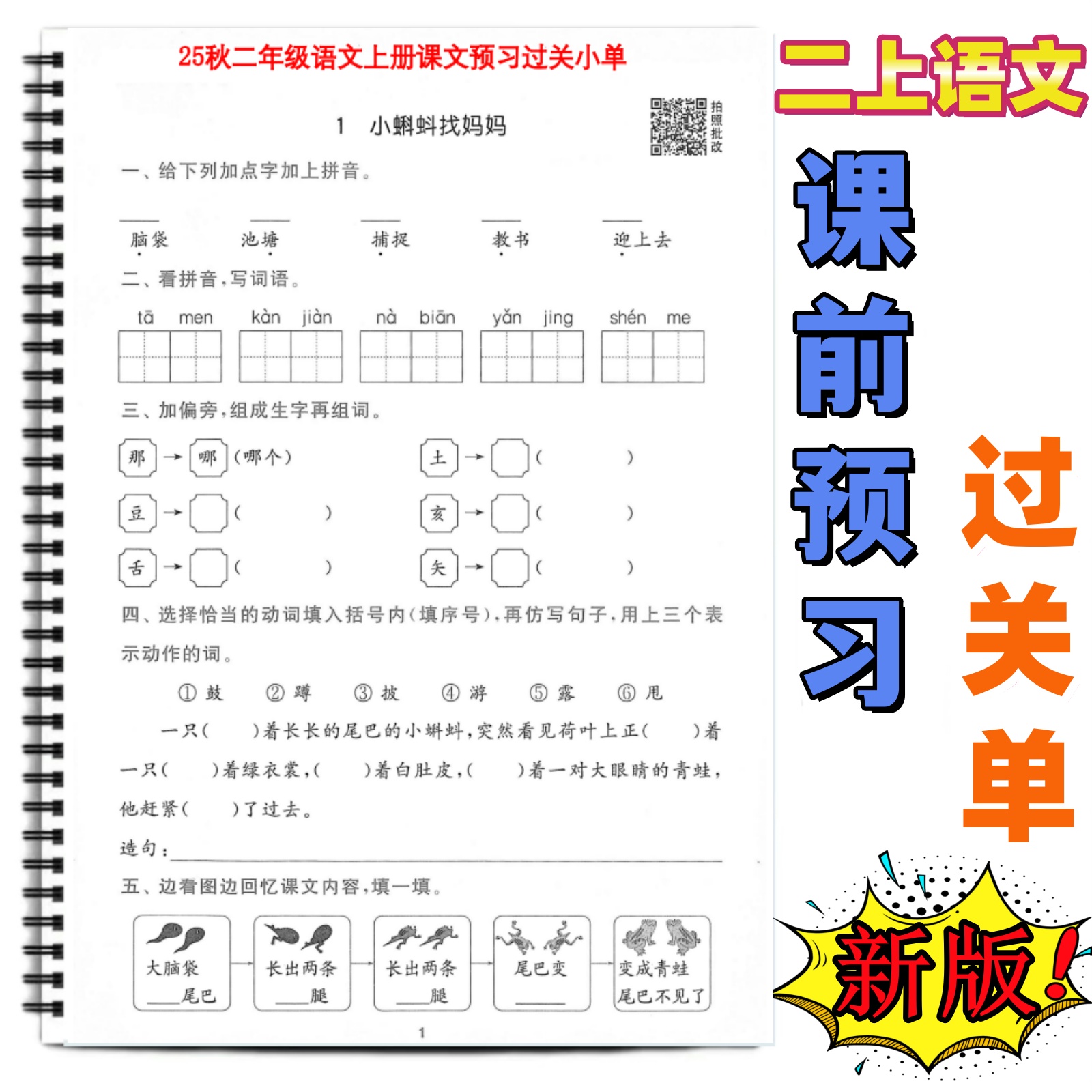 25秋一二三四五六年级语文上册课前预习过关单三年级必备小学全册每课老师推荐新版开学拼音练习偏旁汉字组词基础小朋友句子词语