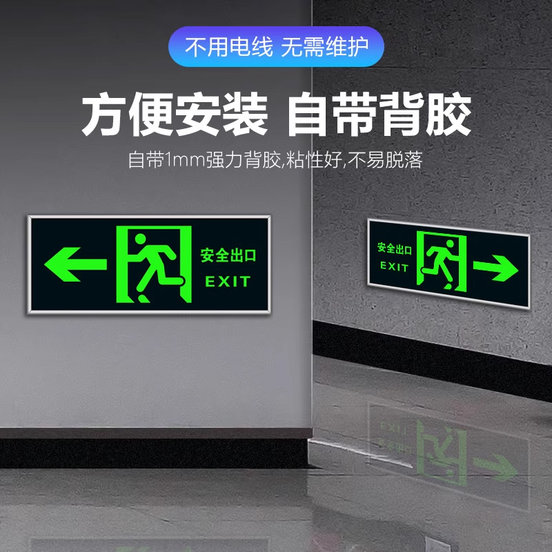 安全出口指示牌墙贴夜光贴纸楼梯楼道地贴紧急逃生疏散小心台阶地滑火栓灭火器禁烟消防提示标志贴消标识标牌